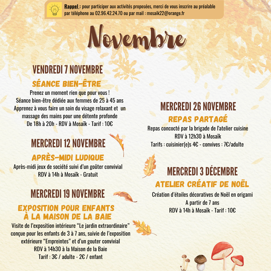 28 Oct 2025 Programme de novembre par mosaik | Classé dans : Actualités | 0 Cliquez ici pour découvrir le programme >